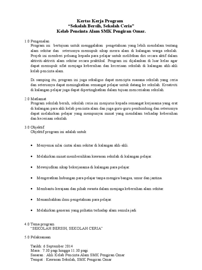 Kertas Kerja Program Sekolah Bersih Sekolah Ceria Pdf